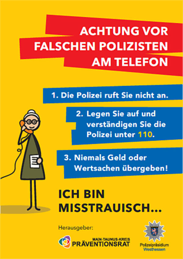 Polizeipräsidiums Westhessen falsche Polizeibeamte an.